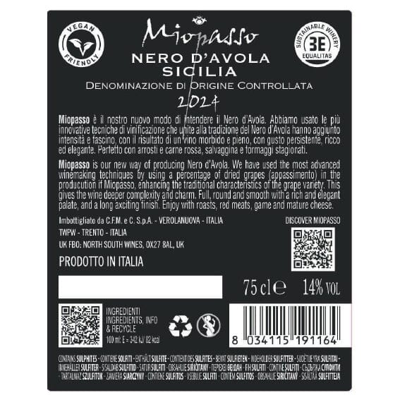The Nero d’Avola grapes are transported in small containers so that they are not crushed by their own weight, and are very softly destemmed in order to keep the skins intact. Fermentation takes place at a controlled temperature between 22-24°C, with a pumping over of the must in order to achieve the best extraction of colour, soft tannins and aromas from the skins. The grapes for “appassimento” are dried for about 30 days on trays in a ventilated room until they lose at least 25% of their natural weight. After “appassimento” the grapes are destemmed, very gently crushed and fermented at about 24C° with frequent pumping over. The two wines are blended together the malolactic fermentation takes place.
